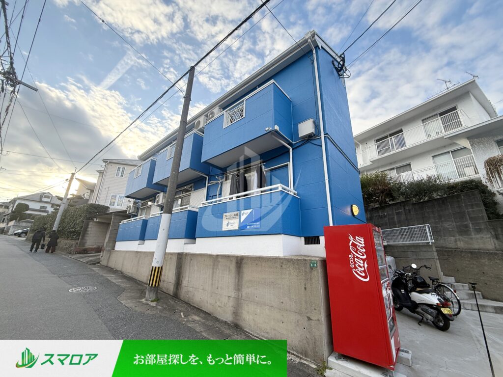 今回募集のお部屋は、高宮にある落ち着いたエリアに佇む青色のアパート
